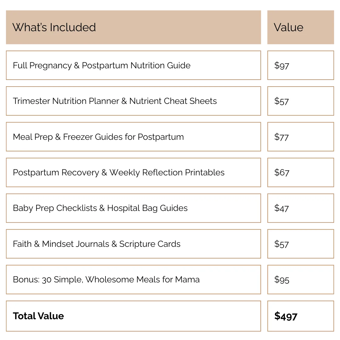 A holistic, real-food guide to support your body, baby, and recovery through pregnancy and beyond.